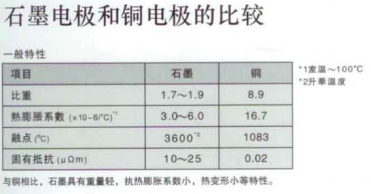 比重為1.7-1.9,為銅的1/5,對于大型電極可以極大減少工件重量,降低機床符合和人工調(diào)裝難度。